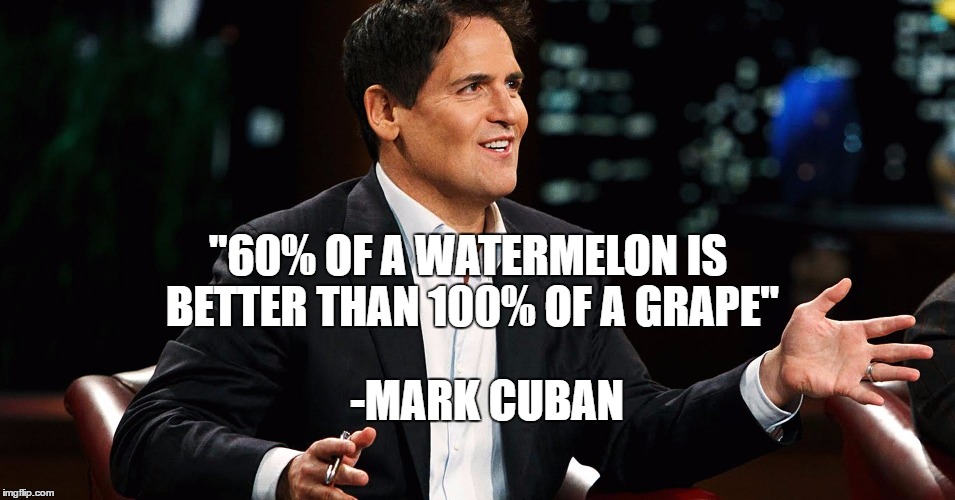 To quote Mark Cuban, owning “60% of a watermelon is better than 100% of a grape.”